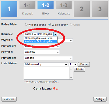 Wybierz czy potrzebujesz bilet w jedną czy w dwie strony: